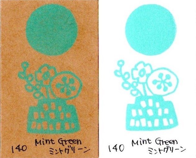 それぞれ、白い紙とクラフト紙に押したときのカラーの参考です。