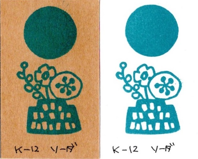 それぞれ、白い紙とクラフト紙に押したときのカラーの参考です。